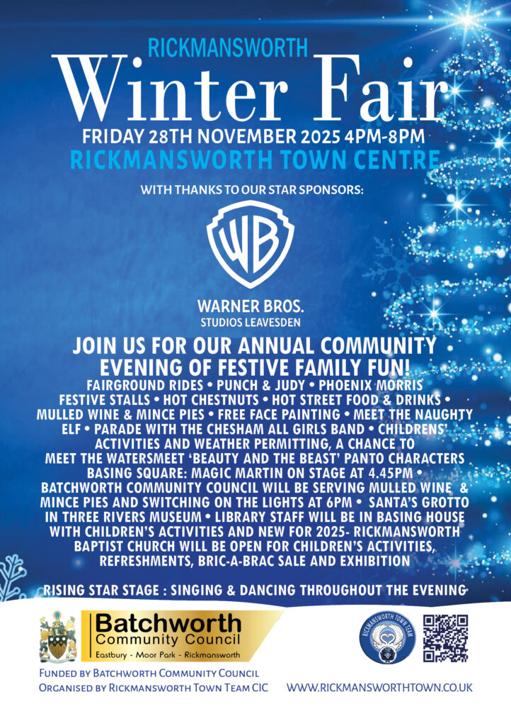 Warner Bros. Studios Leavesden have been a massive supporter of Rickmansworth Winter Fair over the years. We cannot thank them enough for all their support. They also donate a Family Ticket to the Harry Potter Studios each each year as a prize for the Best Dressed Shopfront/Stall.